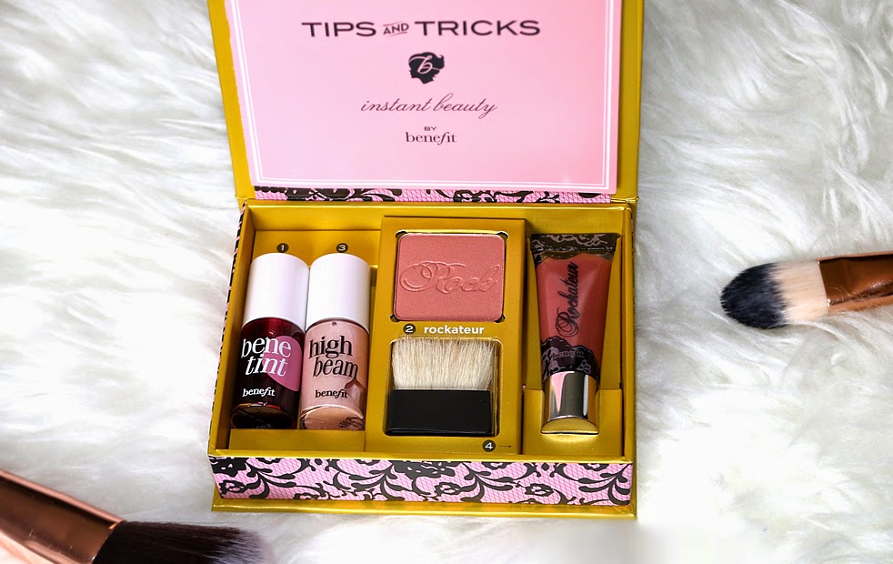 The latest set offered from Benefit refers to itself as a rockin' rose gold lip and cheek kit. It includes four deluxe sample sized products from the Benefit's permanent range, all of which I have tried and loved. For that reason, I think it is a fantastic kit and they put a lot of thoughts into all the products included.
