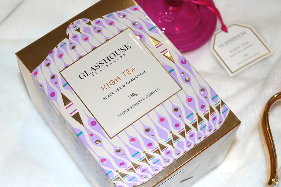 Ditch the sandwiches and scones, it’s time for high heels and macarons. Indulge in High Tea, over a majestic blend of Black Tea, Bergamot and zesty Cardamom. The candle is named ‘High Tea’ and was released for Mother’s Day so has special edition packaging. The box was beautifully decorated with a feminine pastel purple and gold design. The candle itself is encased in a stunning bright magenta glass and gold writing.
